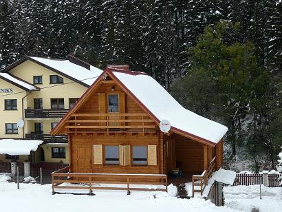 Wenątrz znajdują się dwie sypialnie na piętrze i salon z kominkiem, aneksem kuchennym ,łazienka i telewizją satelitarną na parterze. Na zewnątrz znajduje się również taras. Blisko (ok.900 m ) znajdują się wyciągii narciarskie i krzesełkowe na Pilsko (ok.1600 m n.p.m.). Niedaleko domku (ok. 300 m) można skorzystać z wielu restauracji , sklepów oraz bankomatu.